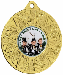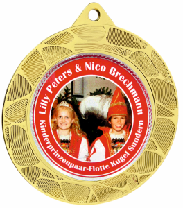 Vereins-, Firmen- oder Veranstaltungslogo bzw. mit einem Foto und individuellen Text gestalten. Alternativ können Sie auch ein Standard-Emblem (hier eine Übersicht unserer Standard-Embleme) auswählen und mit einem eigenen Text rundum beschriften lassen. Alle hier abgebildeten Embleme sind nur Beispiele ! Alle Medaillen sind immer fertig montiert und