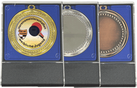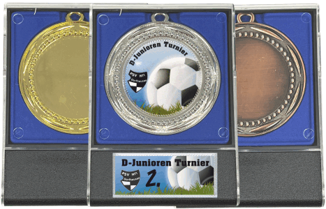 Firmen- oder Veranstaltungslogo bzw. mit einem Foto und individuellen Text gestalten. Alternativ können Sie auch ein Standard-Emblem (hier eine Übersicht unserer Standard-Embleme) auswählen und mit einem eigenen Text rundum beschriften lassen. Alle hier abgebildeten Embleme sind nur Beispiele ! Alle Medaillen sind immer fertig montiert und