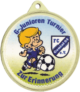 Firmen- oder Veranstaltungslogo bzw. mit einem Foto und individuellen Text gestalten. Alternativ können Sie auch ein Standard-Emblem (hier eine Übersicht unserer Standard-Embleme) auswählen und mit einem eigenen Text rundum beschriften lassen. Alle hier abgebildeten Embleme sind nur Beispiele ! Alle Medaillen sind immer fertig montiert und