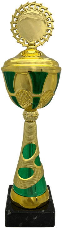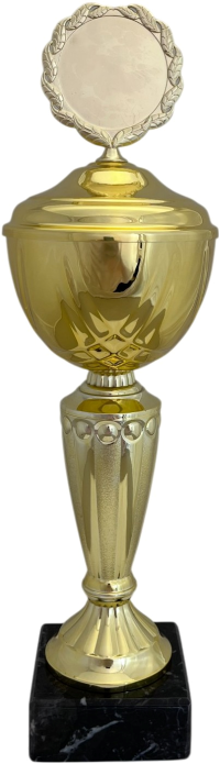 dazu. Dies kann ein Standard-Emblem (Übersicht) oder ein Exklusiv-Emblem (Beispiele) sein. Alle Pokale sind immer fertig montiert.