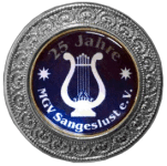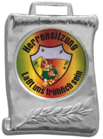 Anstecknadel/Anstecker und das 1,5cm oder 2,5cm Emblem aus Plexiglas mit Perlrand. Dies Emblem können wir individuell für Sie mit Ihrem Vereins-, Firmen- oder Veranstaltungslogo bzw. mit einem Foto und