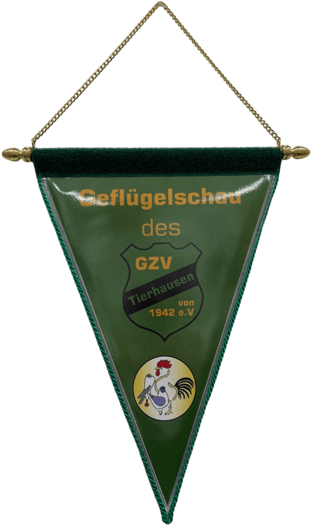 sein). Die Wimpel sind in einer wasserabweisenden Folie eingenäht. Das Abschlussband oben quer ist aus Velour oder Flausch. Bei der Aufhängung können sie zwischen einer ø3mm Kordel oder einer ø5mm Kette