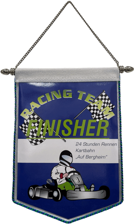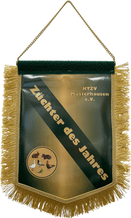 sein). Die Wimpel sind in einer wasserabweisenden Folie eingenäht. Das Abschlussband oben quer ist aus Velour oder Flausch. Bei der Aufhängung können sie zwischen einer ø3mm Kordel oder einer ø5mm Kette