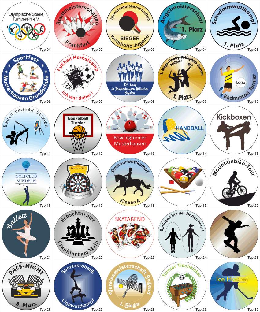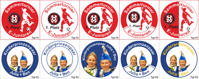 Es gibt viele Möglichkeiten ein Emblem zu gestalten. Hier ein paar Layout-Beispiel, wie Ihr Emblem optisch aussehen könnten.