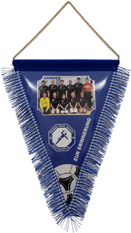 sein). Die Wimpel sind in einer wasserabweisenden Folie eingenäht. Das Abschlussband oben quer ist aus Velour oder Flausch. Bei der Aufhängung können sie zwischen einer ø3mm Kordel oder einer ø5mm Kette